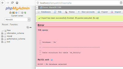 No Database Selected When Importing In Phpmyadmin Stack Overflow