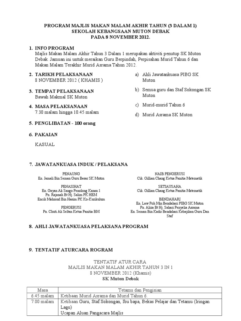 Tentatif Atur Cara Majlis Makan Malam Akhir Tahun 3 In 1 8 November 2012 Khamis