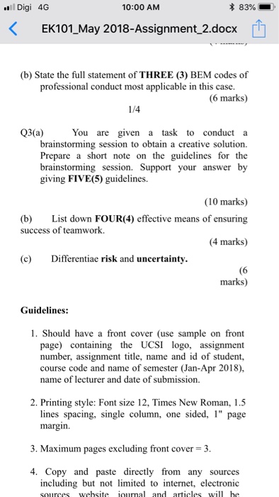 Solved 2 57 Pm Ek101 May 2018 Assignment 2 Docx I Q Read Chegg Com