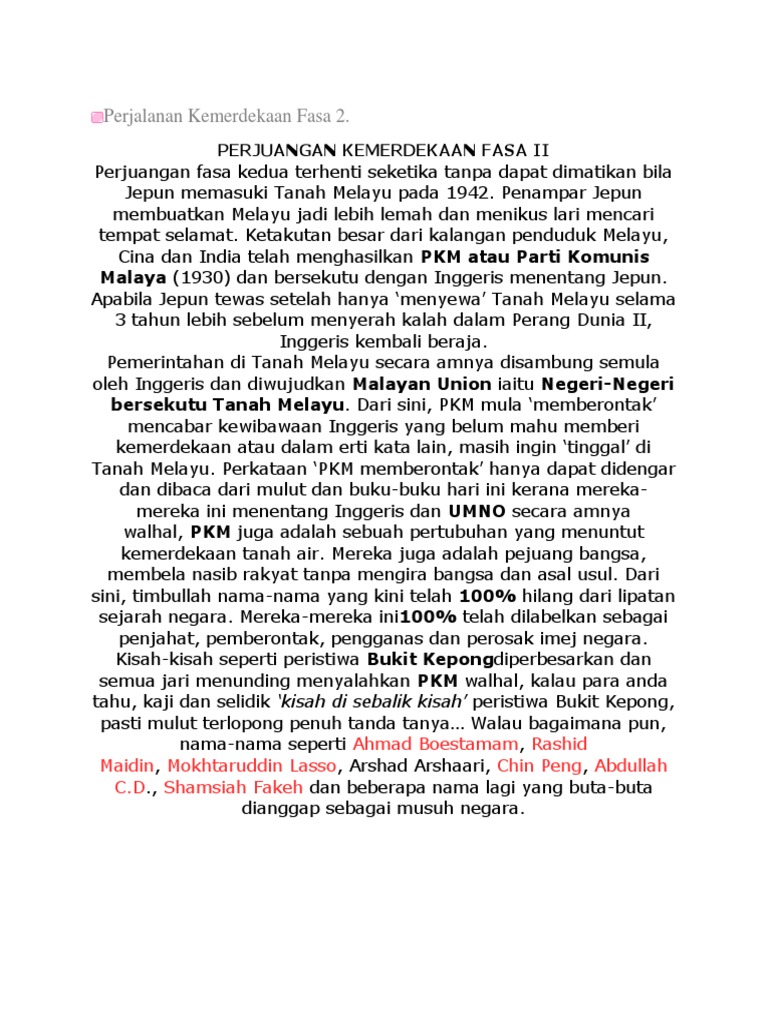 Tokoh Tokoh Kemerdekaan Malaysia Docx