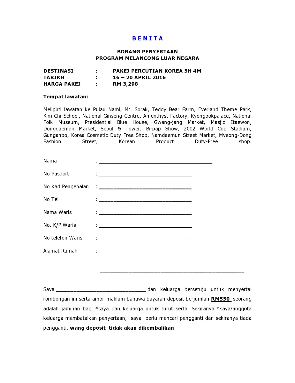 Borang Permohonan Lawatan Ke Luar Negara Persendirian Kosong