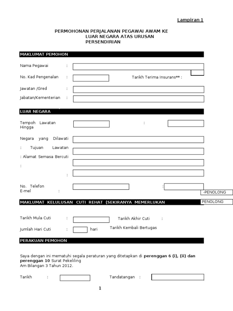 Doc 661739357 Borang Permohonan Perjalanan Ke Luar Negara Lampiran 1 1 Zakwan Wan Academia Edu