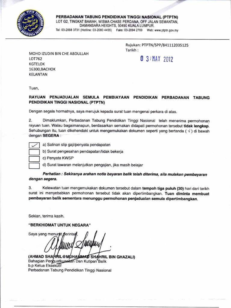 Pejabat Ptptn Cawangan Kuala Lumpur Contoh Surat Pengesahan Baki