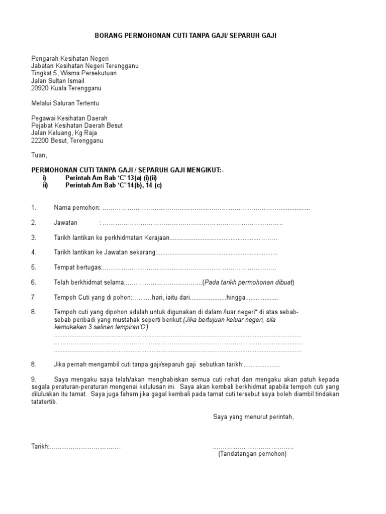 Permohonan Cuti Tanpa Gaji Dan Separuh Gaji
