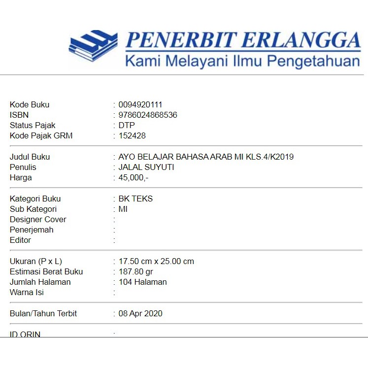 Jual Bahasa Arab Kelas 4 Murah Harga Terbaru 2020