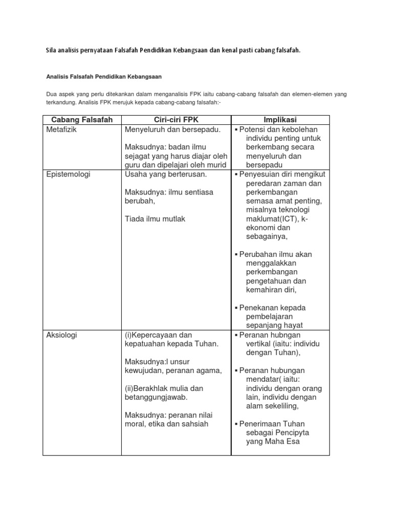 Cabang Falsafah Ciri Ciri Fpk Implikasi