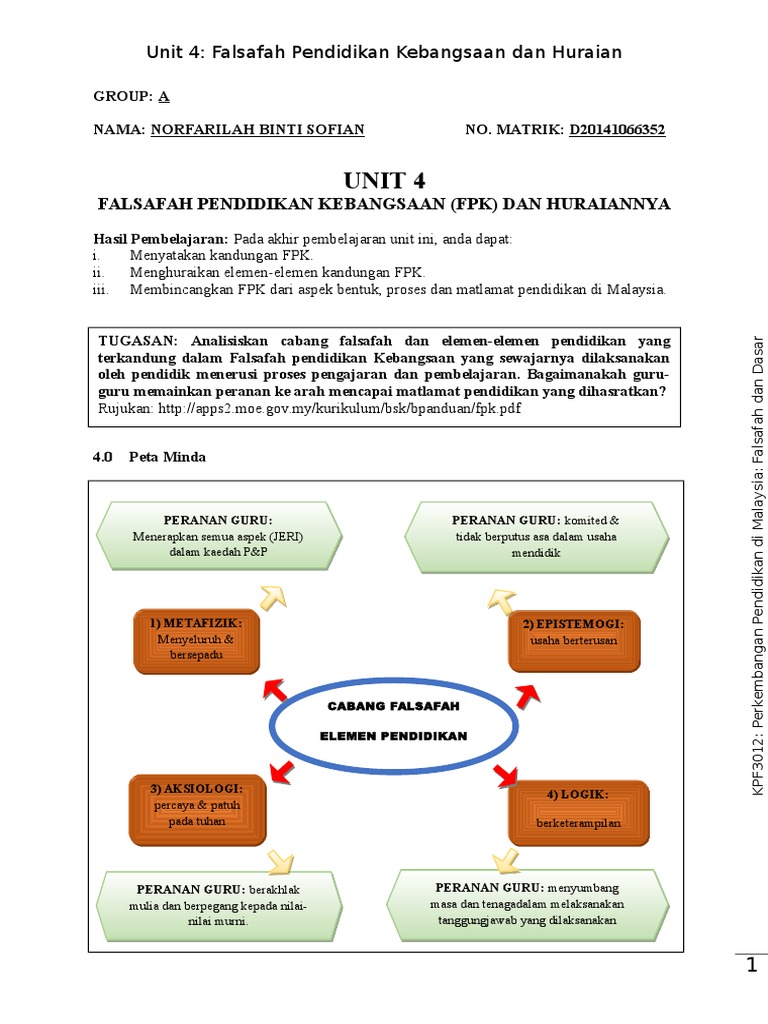 Kpf Unit 4 Unit 4 Falsafah Pendidikan Kebangsaan Dan Huraian Unit 4 Falsafah Pendidikan Kebangsaan Fpk Dan Huraiannya Tugasan Analisiskan Cabang Course Hero