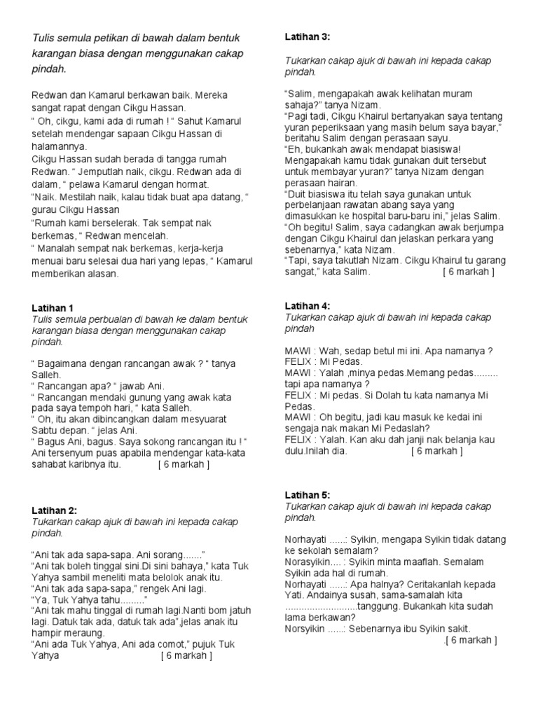 3 Latihan Cakap Ajuk Dan Cakap Pindah 2011 Pdf Document