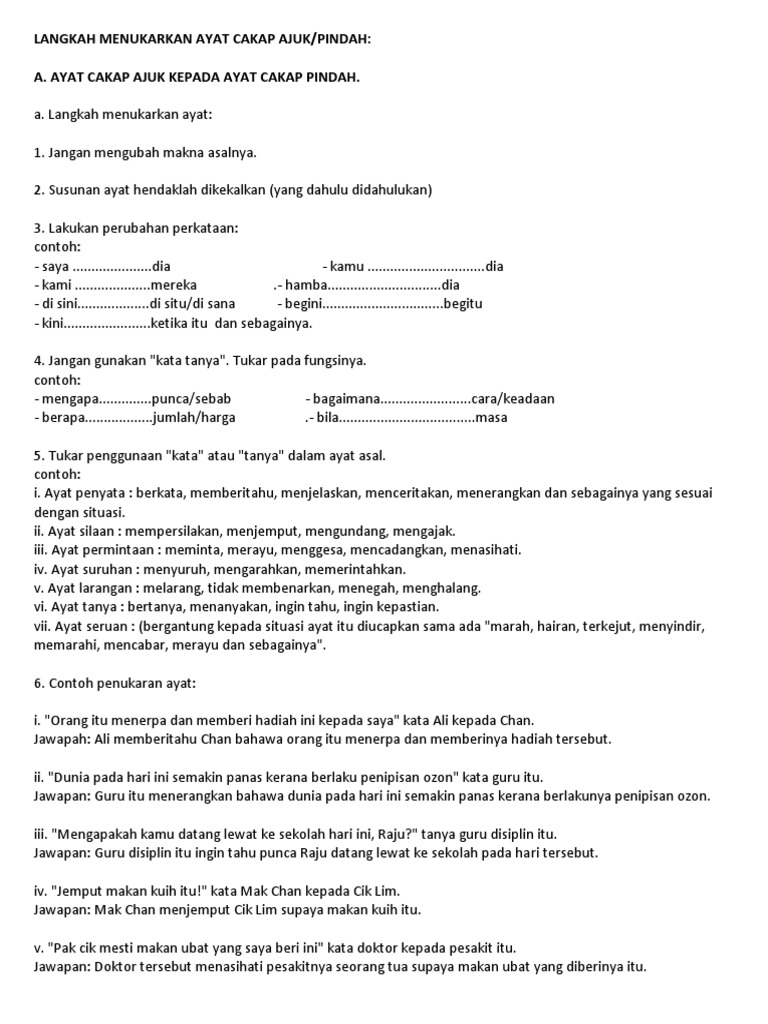 10 Petua Dalam Transformasi Ayat Cakap Ajuk Kepada Cakap Pindah