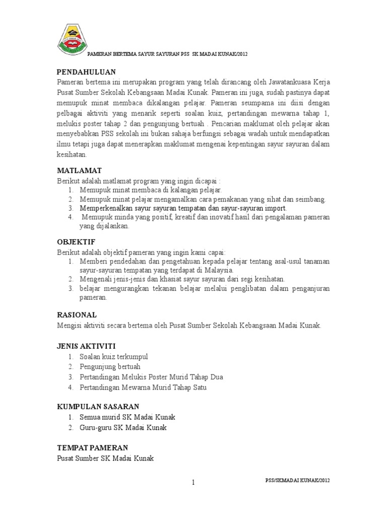 Kertas Kerja Pameran Bertema Sayur Sayuran Doc