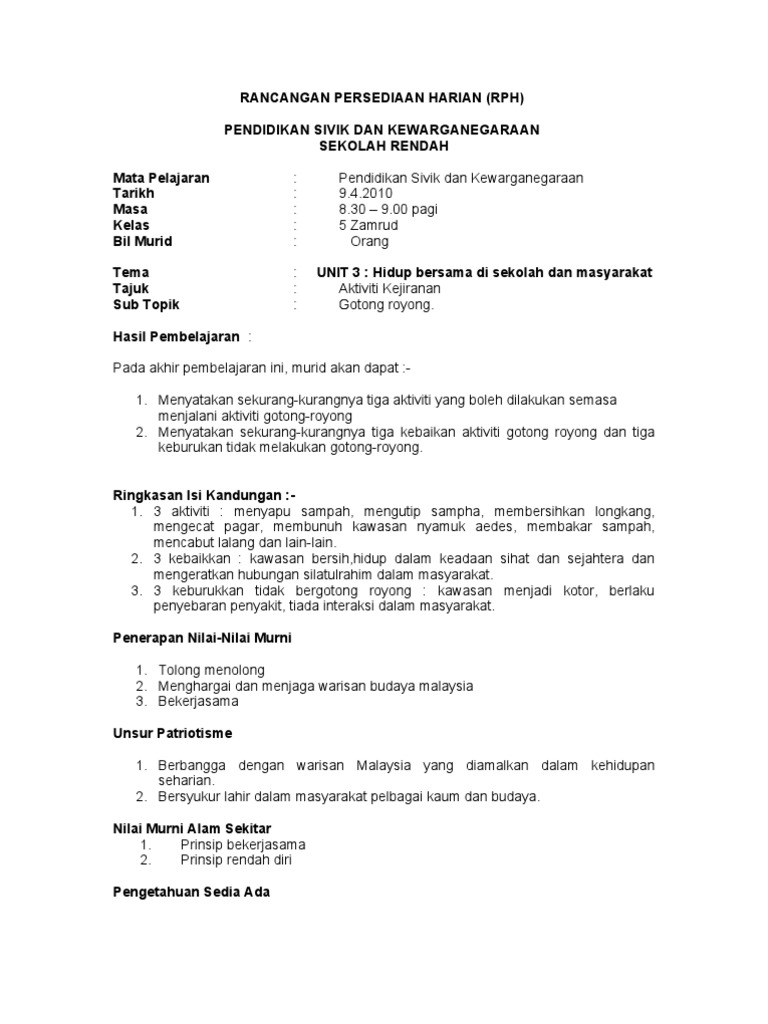 Doc Rancangan Pengajaran Harian Suhada Sohot Academia Edu