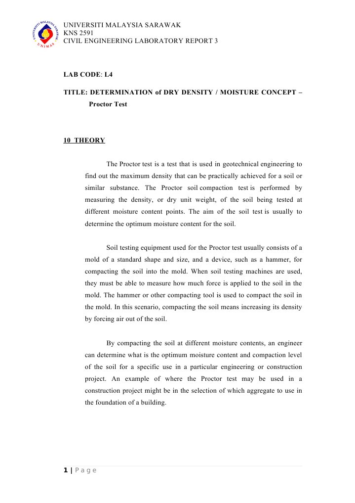 Solution Standard Proctor Compaction Test Lab Report Studypool