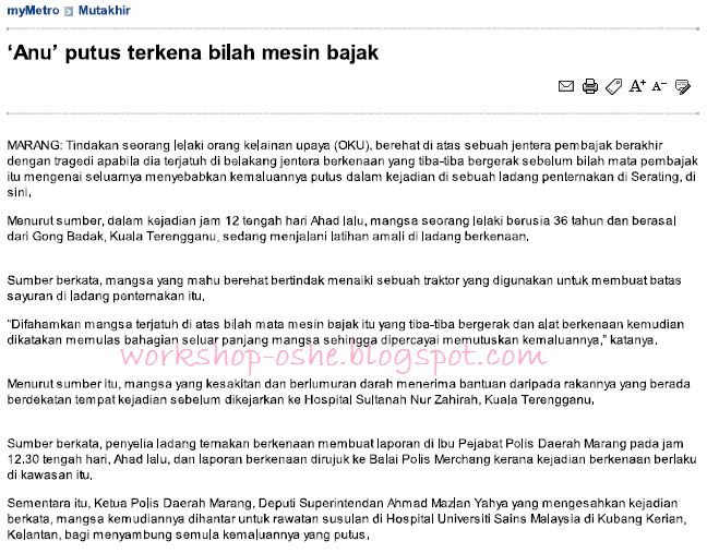 Contoh Borang Laporan Kemalangan Di Tempat Kerja