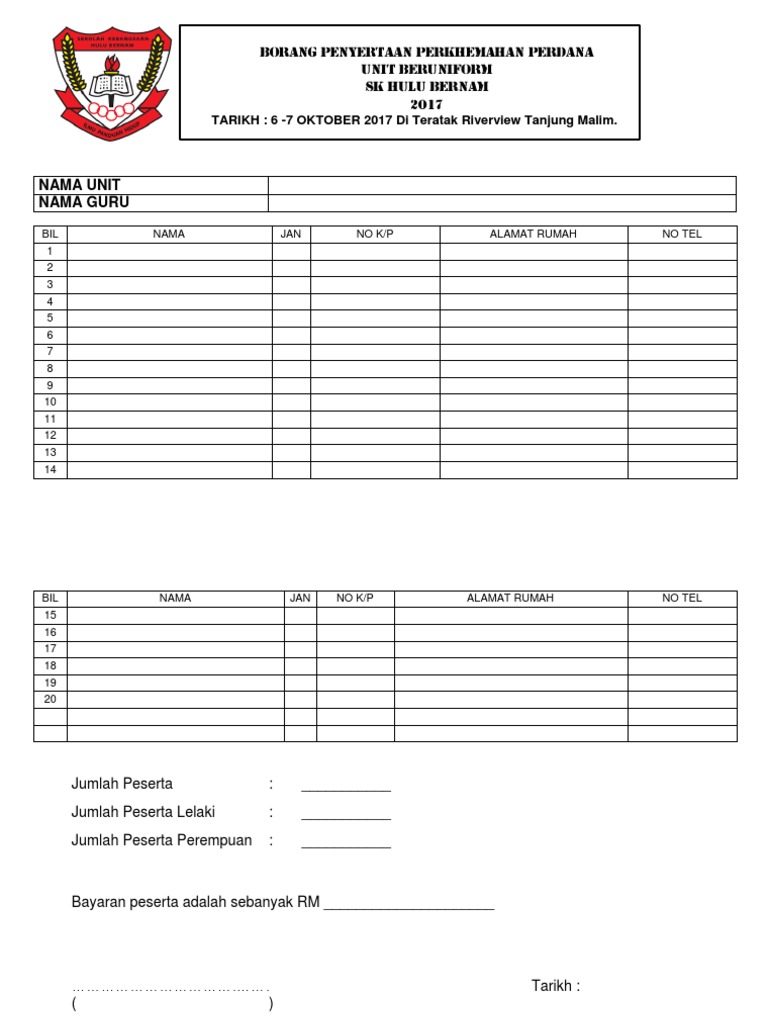 Borang Pendaftaran Peserta Sukan Sekolah Docx