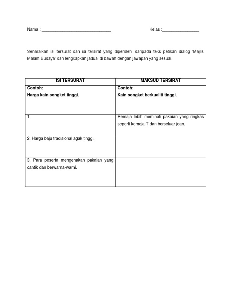 Contoh Isi Tersurat Dan Tersirat Tahun 5