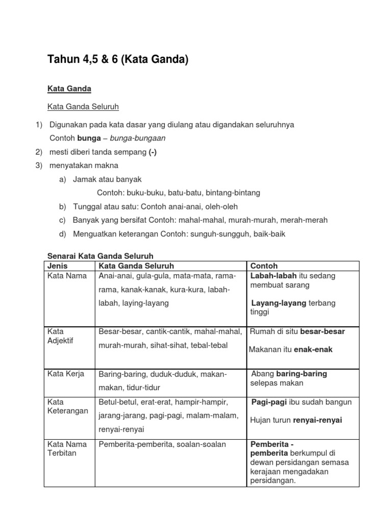 Contoh Kata Ganda Berentak Tahun 4