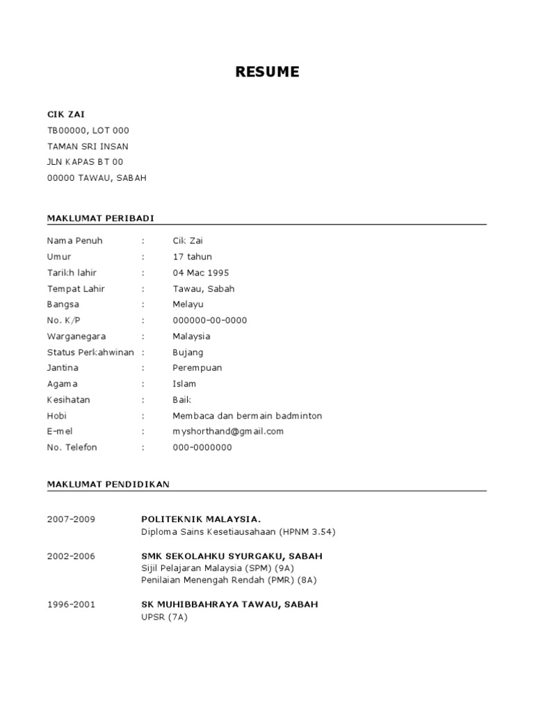 Contoh Resume 1