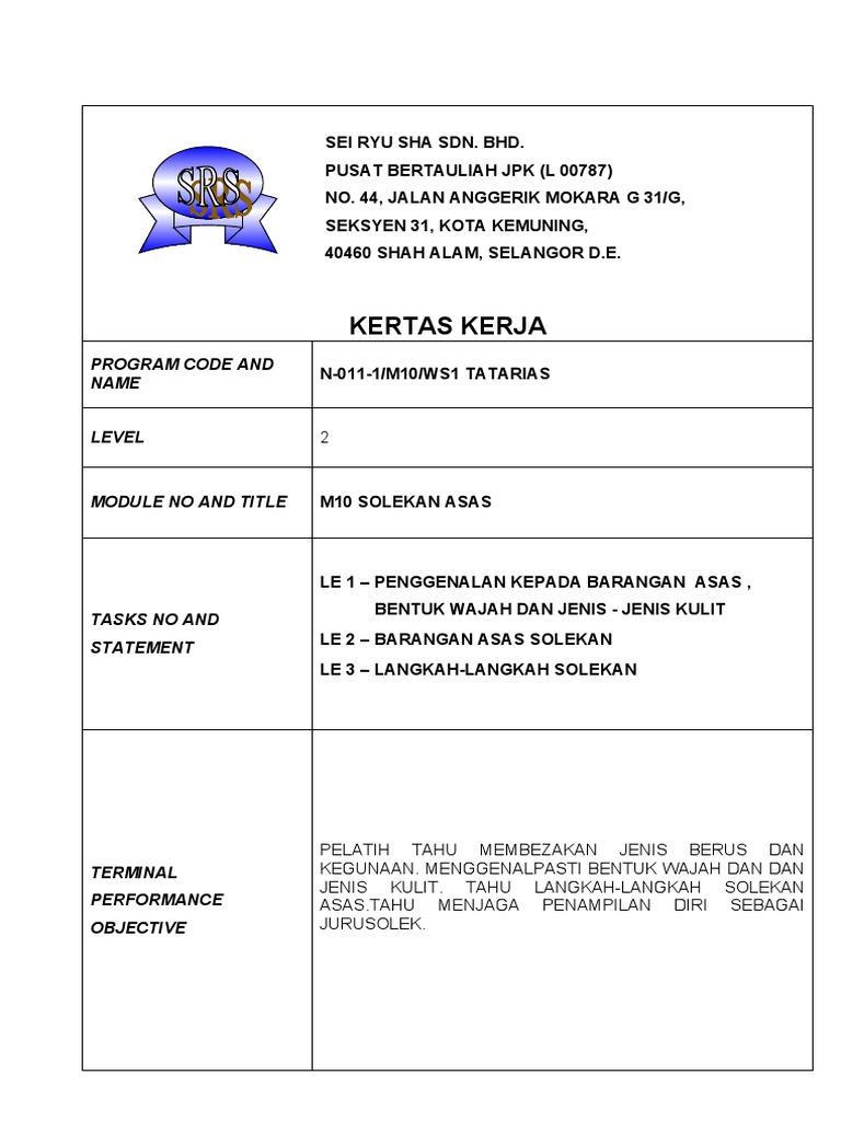 Kertas Kerja Bengkel Latihan Gunting Rambut