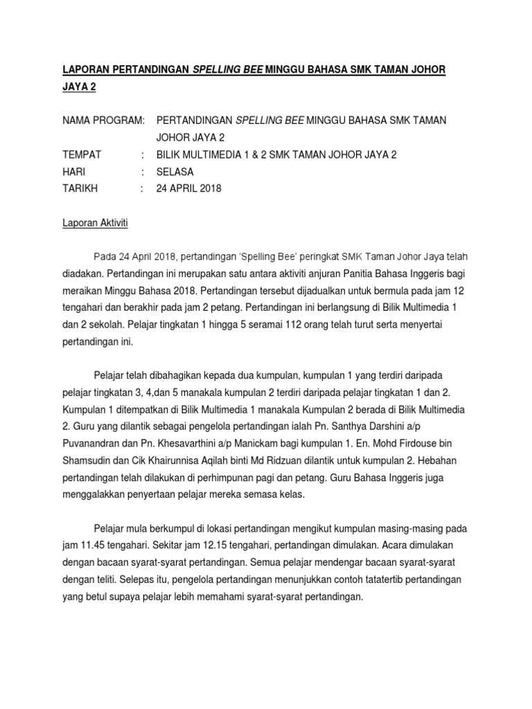 Pdf Contoh Format Laporan Aktiviti Laporan Aktiviti Universiti Kebangsaan Malaysia Nur Fatihah Academia Edu