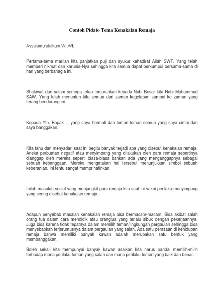 Doc Contoh Teks Diskusi Tentang Kenakalan Remaja Syafira Septika Academia Edu