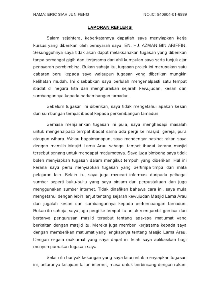 Laporan Reflektif Docx 97 Laporan Reflektif Kursus Tamadun Islam Dan Asia Kod Mpu3122 Ini Merupakan Salah Satu Kursus Yang Diambil Oleh Saya Dalam Course Hero