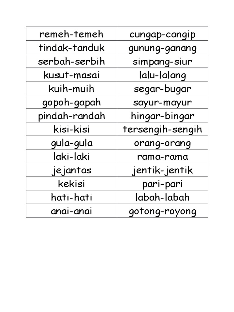 Contoh Remeh Temeh Contoh Kata Ganda Berentak
