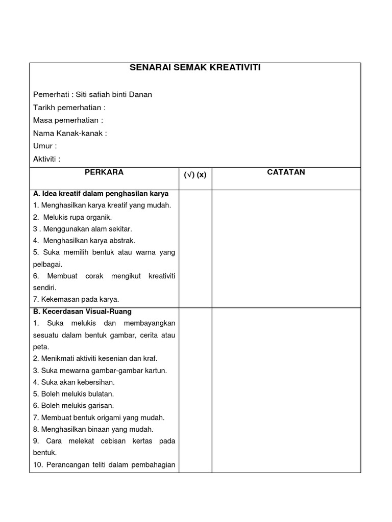 Doc Senarai Semak Tingkah Laku Emosi Kanak Kanak Hce2073 Perkembangan Sosioemosi Kanak Kanak Dalam Pendidikan Awal Kanak Kanak Nur Hidayah Academia Edu