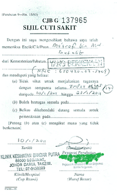 Contoh Sijil Cuti Sakit Kerajaan