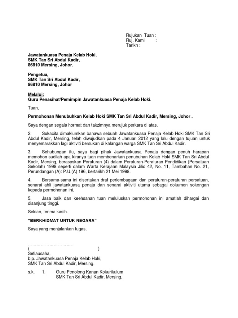 Format Surat Rasmi Kepada Pengetua Surat Rasmi F