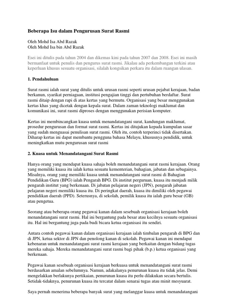 Beberapa Isu Dalam Pen Gurus An Surat Rasmi