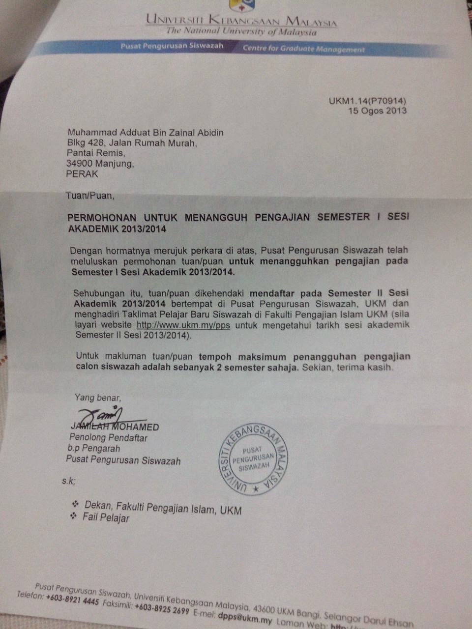 Surat Rasmi Rayuan Kemasukan Ke Universiti Surasmi U