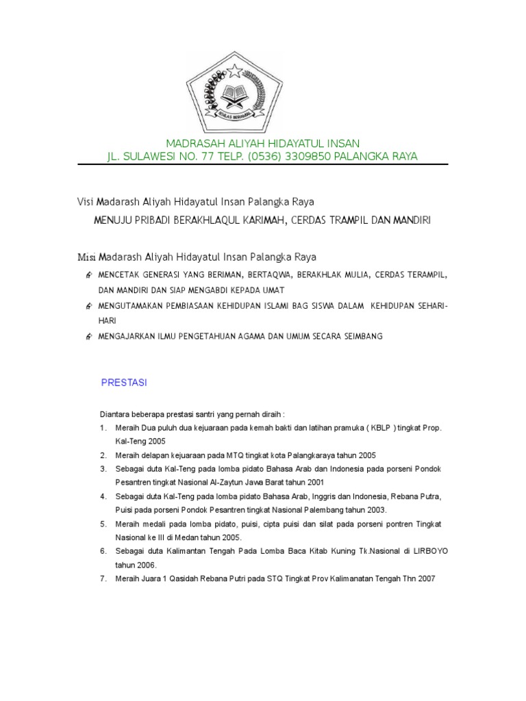 Visi Misi Madrasah Aliyah Hidayatul Insan