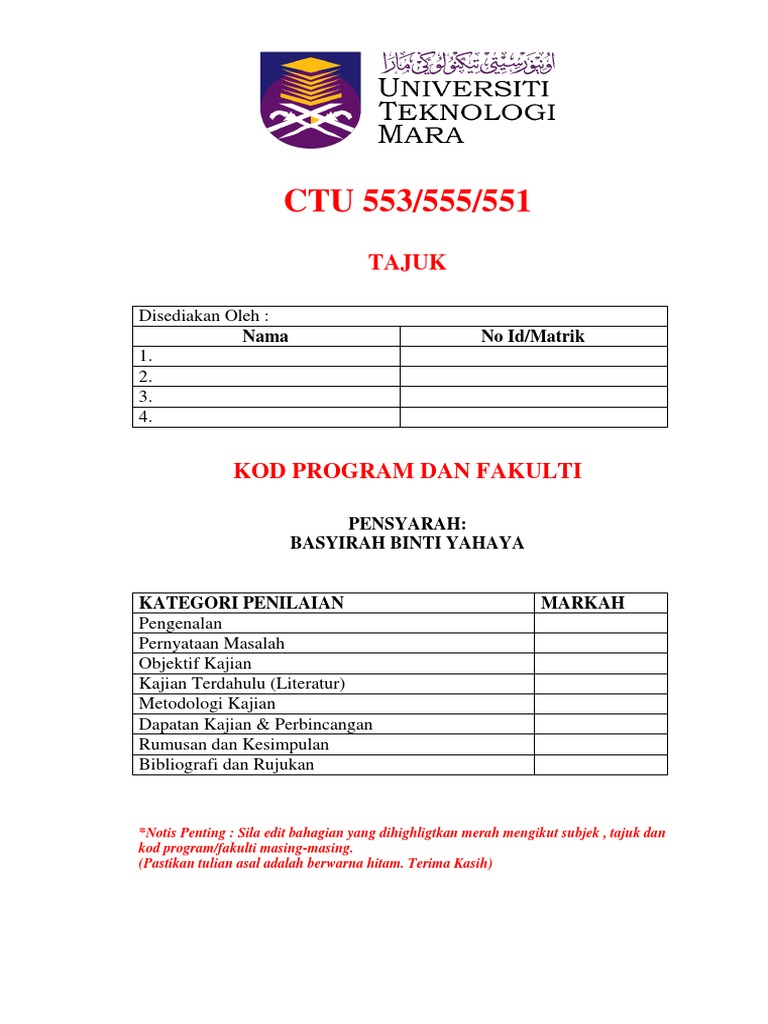 Template Assignment Docx Ctu 553 555 551 Tajuk Disediakan Oleh Nama 1 2 3 4 No Id Matrik Kod Program Dan Fakulti Pensyarah Basyirah Binti Yahaya Course Hero