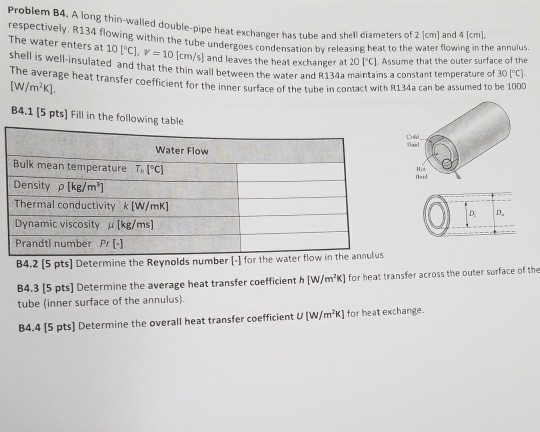 Solved Problem B4 A Long Thin Walled Double Pipe Heat Ex Chegg Com