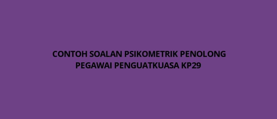 Contoh Soalan Psikometrik Penolong Pegawai Penguatkuasa Kp29 Spa