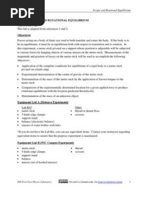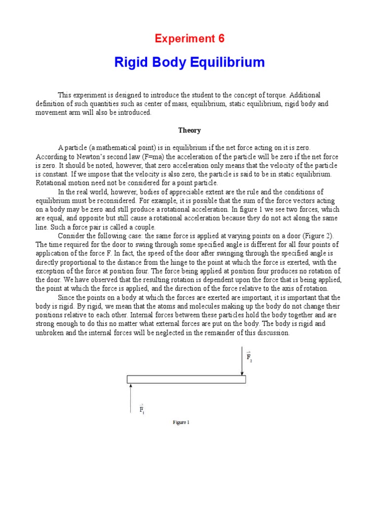 Exp 6 Theory Rigid Body Equilibrium Rotation Around A Fixed Axis Torque